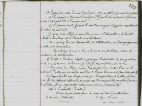 Abschrift : « […] "A l'appui de ce voeu, les considérations ci-après mentionnées sont invoquées :</br>1°) Les examens de droit sont les seuls pour lesquels il n'éxiste pas d'épeuves écrites d'admissibilité à l'examen oral ;</br>2°) L'épreuve écrite fournit le meilleur moyen d'apprécier exactement la valeur des candidats.</br>Je vous serai obligé de soumettre ce voeu à l'Assemblée de la Faculté de Droit de Toulouse et de l'inviter à en délibérer.</br>Vous voudrez bien me transmettre sa délibération, en l'accompagnant de votre avis personnel."</br>
